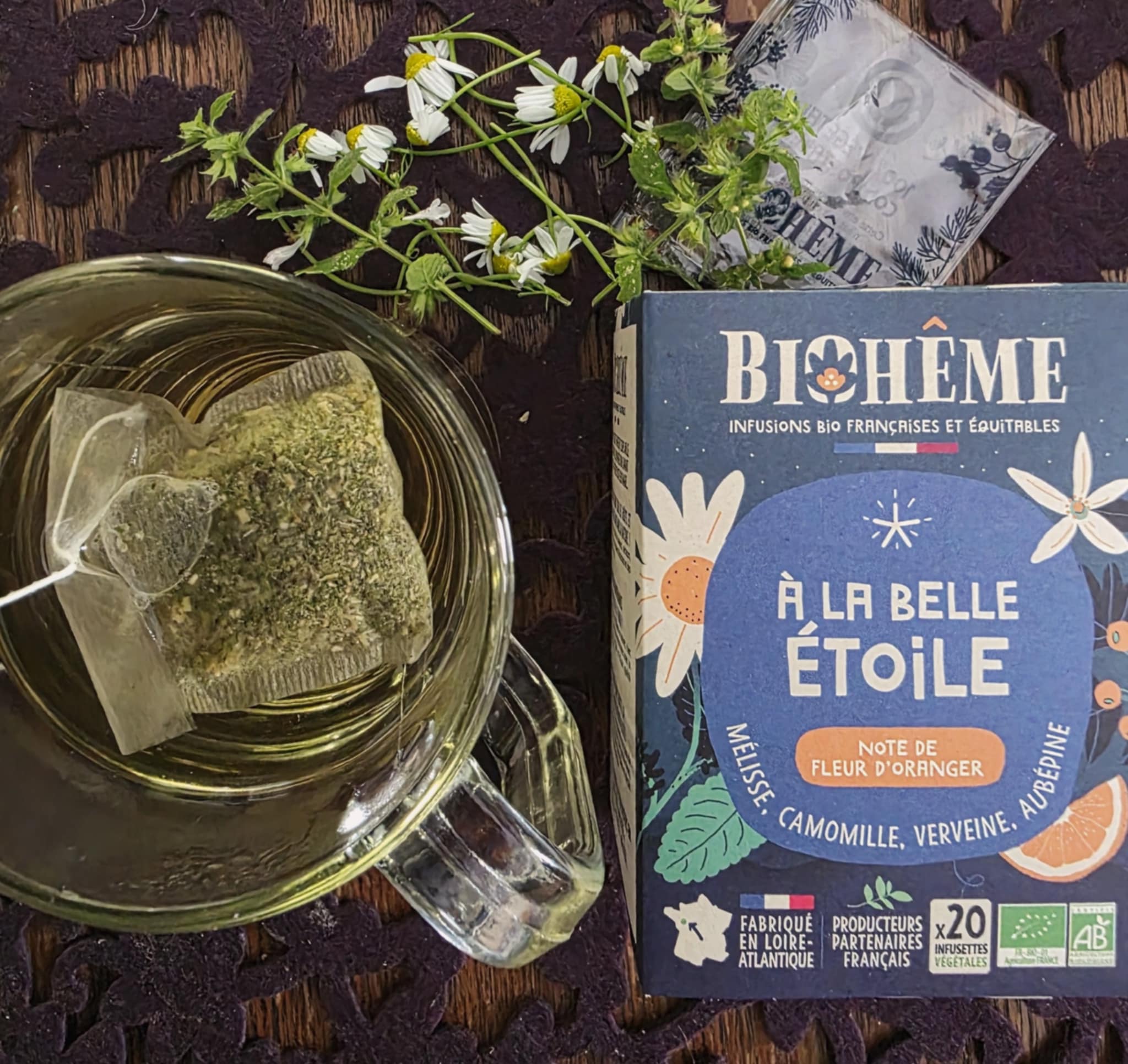 100% luomua Ranskasta, Loiren alueelta. Teepussit on yksittäin pakattu, mutta kääreen voi kompostoida eli missään ei ole muovia. Näin se pitääkin olla!